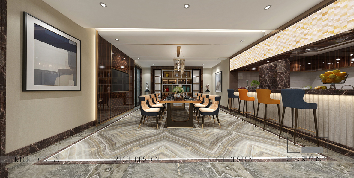 設計師在傳統法式的基礎上衍生出有新法式面貌的風格,在保留法式的傳統裝飾圓度下做簡化處理,形態簡約而不失奢華,打造利落率性的氣質,呈現出時尚與奢華的空間。